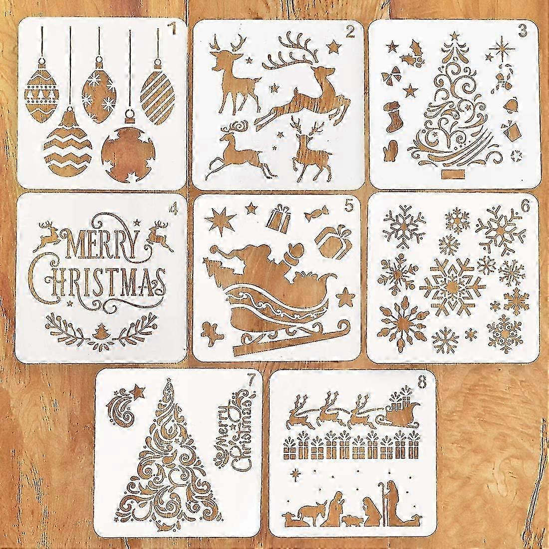 Christmas Stencil, 8 Pieces Small Plastic Paint Stencil Reusable for Bullet Journal Scrapbooking, Craft Card Making