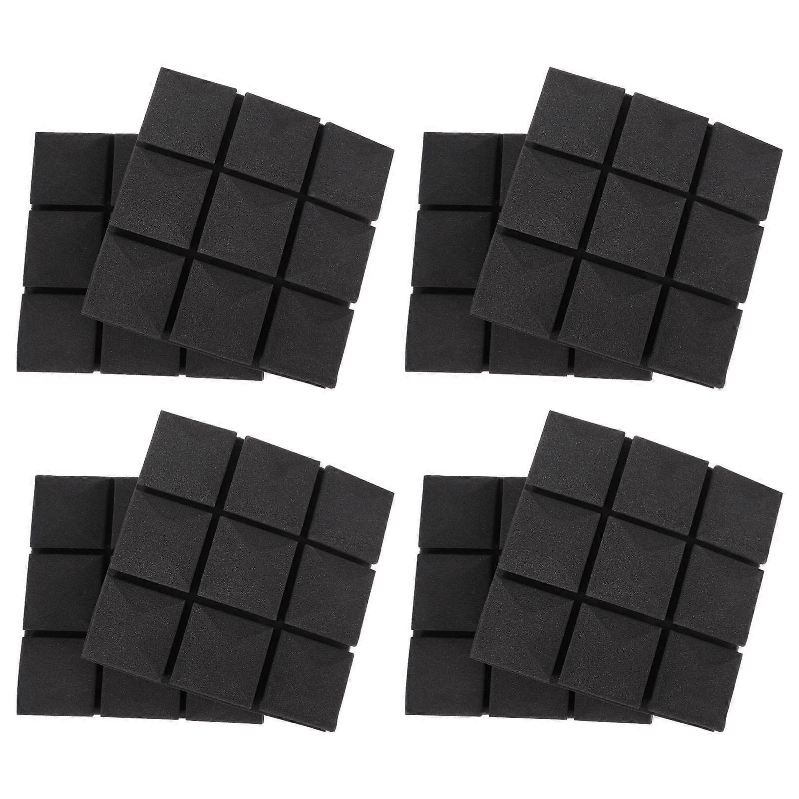 These sound-absorbing panels help foster a quiet environment in smaller to medium sized rooms by reducing reverb and sound reflection. Improves vocal clarity and acoustics of your home recording , auditorium, vocal booths, control rooms, video games, home offices or gym with professional acoustic treatment. Features - Material: Rubber and Plastic. - Size: About 30.00X30.00X5.00cm/11.79X11.79X1.97inch. - This acoustic panel is denser, thicker, and more uniform which results in more sound absorption. - Each package comes with 12 panels, enough for you to use. - This acoustic panel can be used as acoustic cover for walls, ceilings and doors. - It can improve vocal clarity in home recording studios, video games, home offices or gyms. - It helps to create a quiet environment in small and medium-sized rooms. Package list: 12 x Soundproof Panels