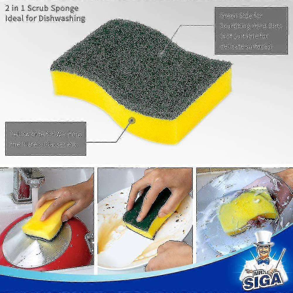 Heavy Duty Scrub Sponge, Pack Of 6, Size:11 X 7 X 3 Cm, 4.3" X 2.8" X 1.2"