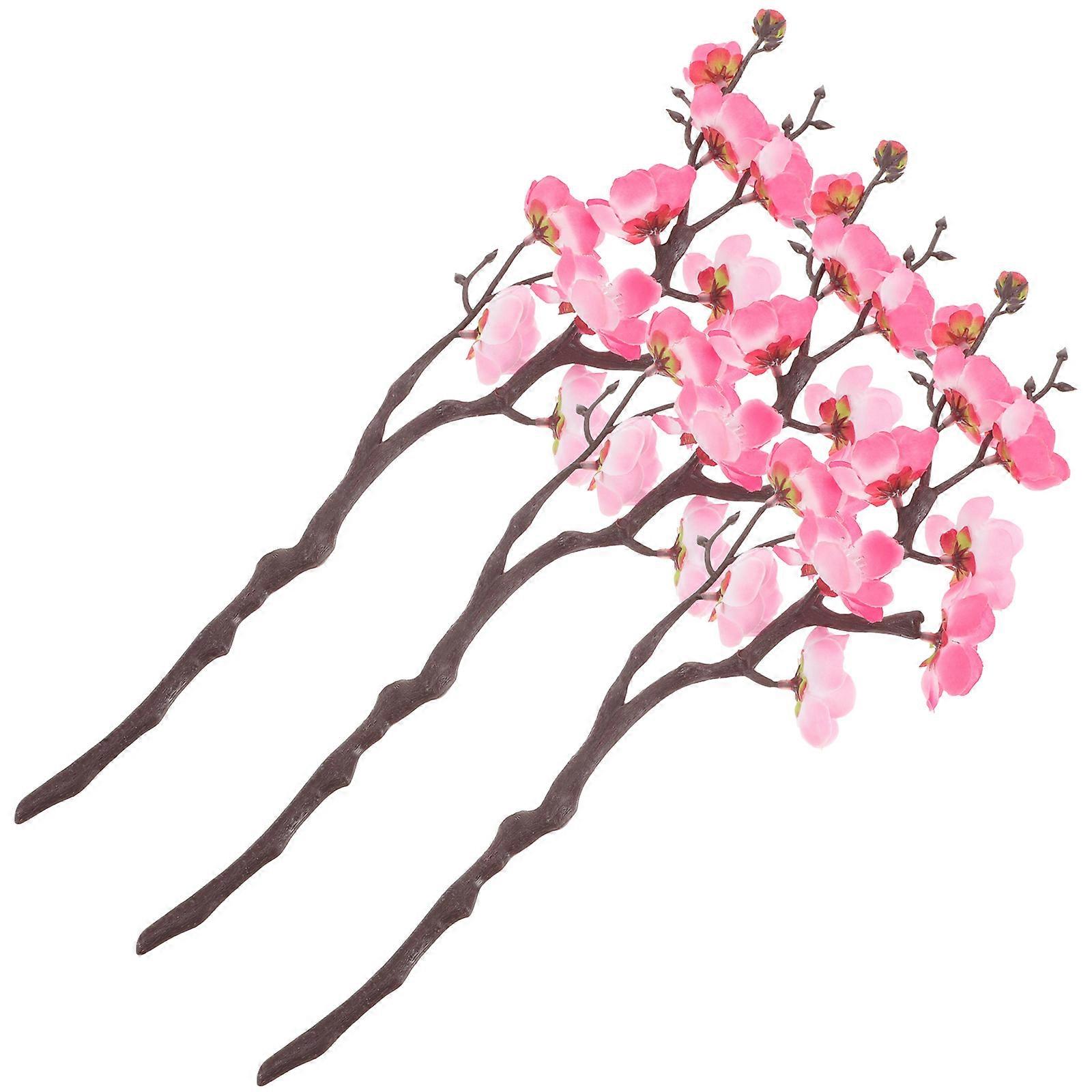 Artificial Plum Blossom Stem Fake Flowers Branches Home Garden Decor Realistic Design 38.00X13.00X3.00CM 3Pcs