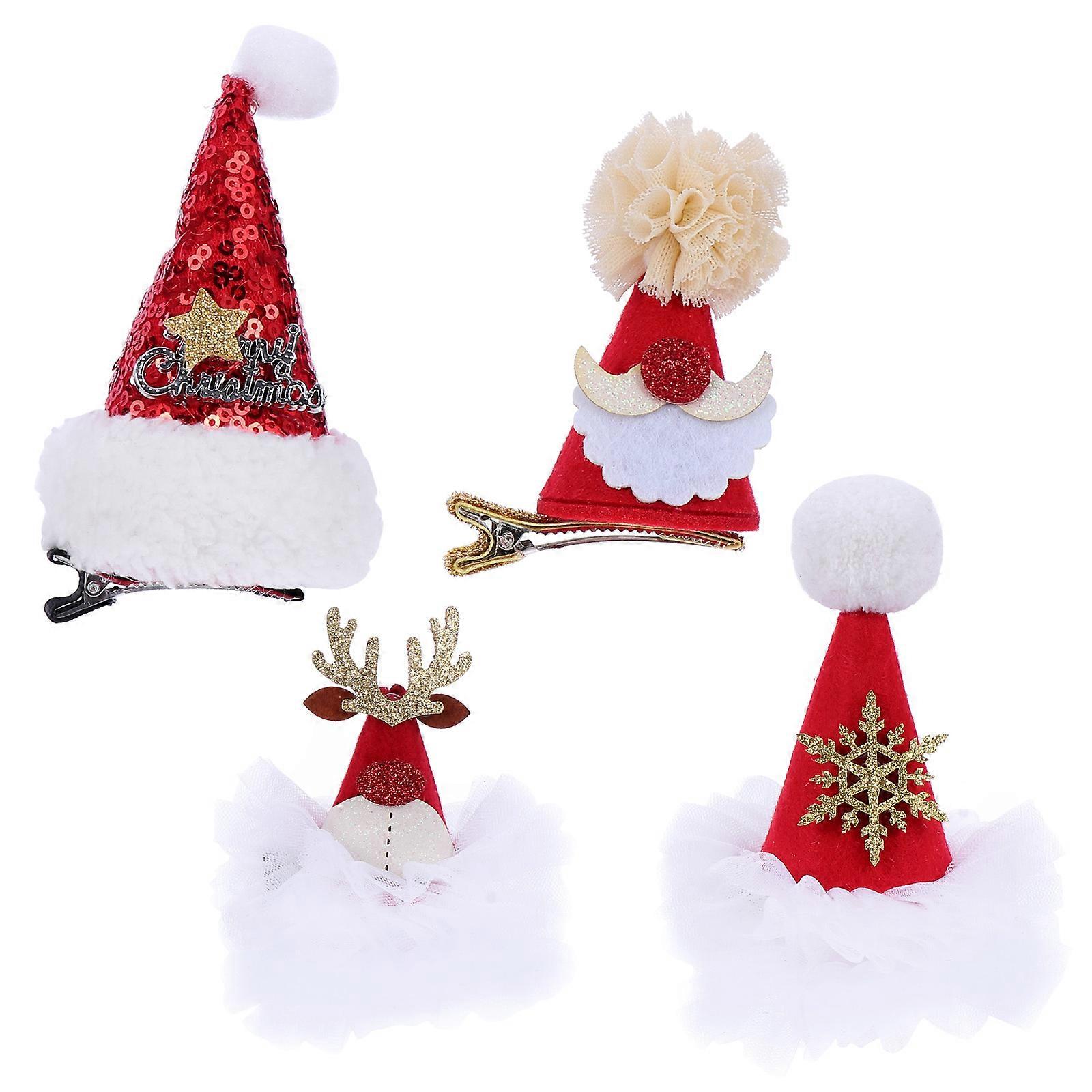 Hair Accessories Traditional Christmas Hat Style Assorted Color 10x7cm For Little Girls 4Pcs