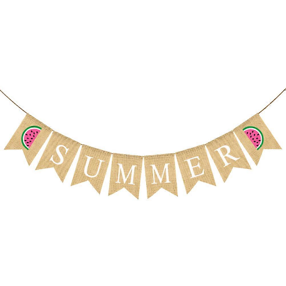 Tropical Bunting Party Garland Watermelon Burlap Banner Creative Swallowtail Shape Rustic Style For Hawaiian Luau Pool Beach BBQ 1Pcs