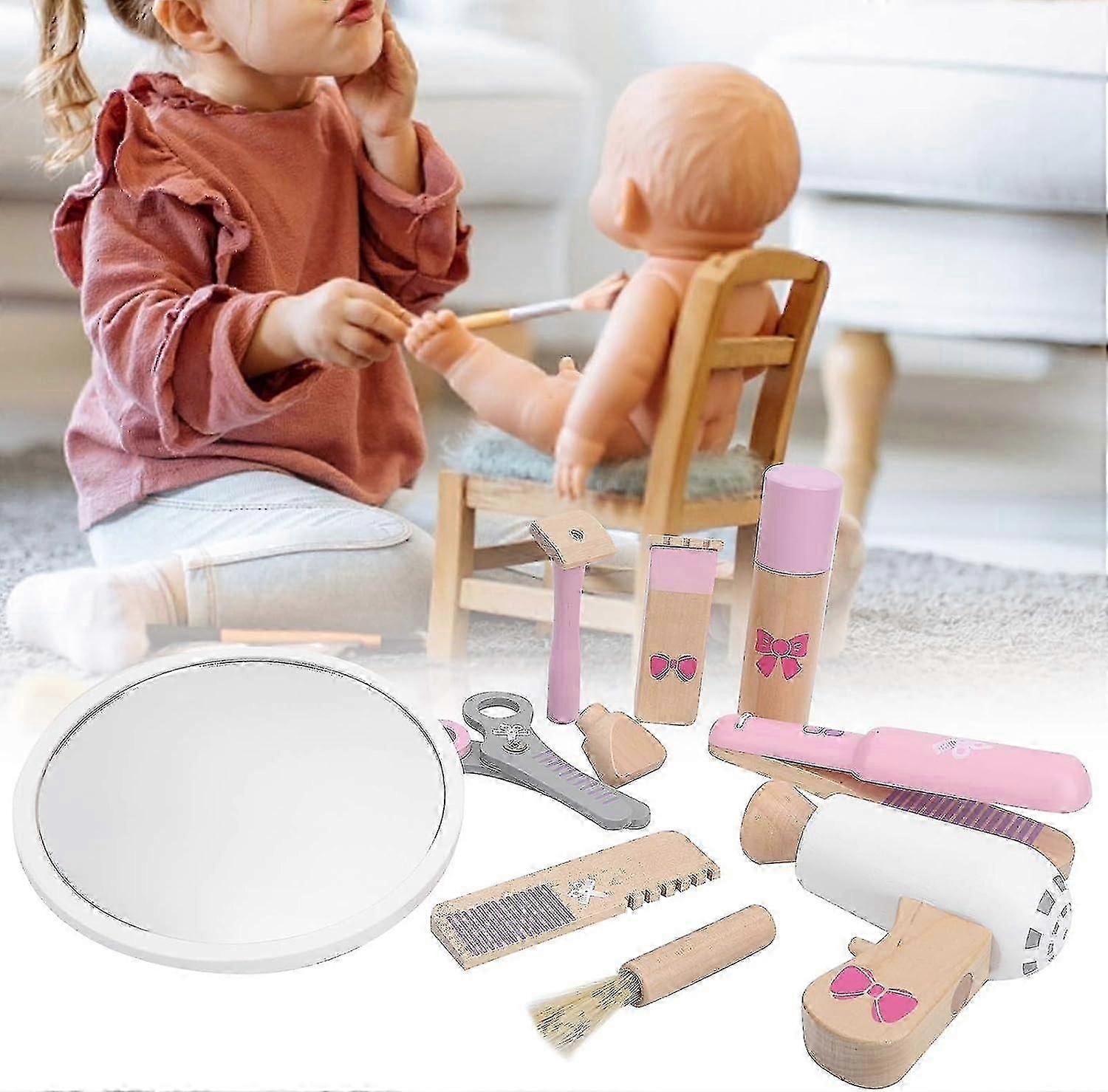 Kids Wooden Hairdressing Toy Set,pretend Hairdresser Kit Role Play Make Up Beauty Toys Simulation Hairdressing Tool Educational Toy For Girls(gb-pink