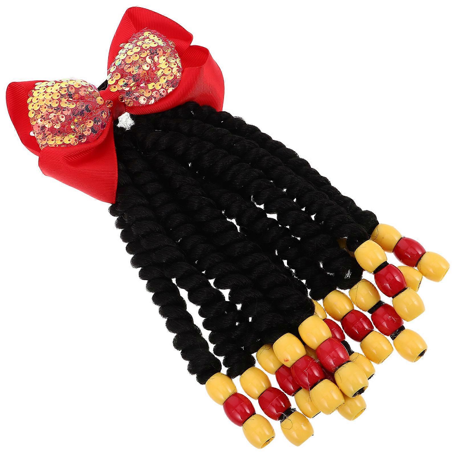 Red Bowknot Ponytail Extension for Decoration 2Pcs Girls Braided Hair Accessory