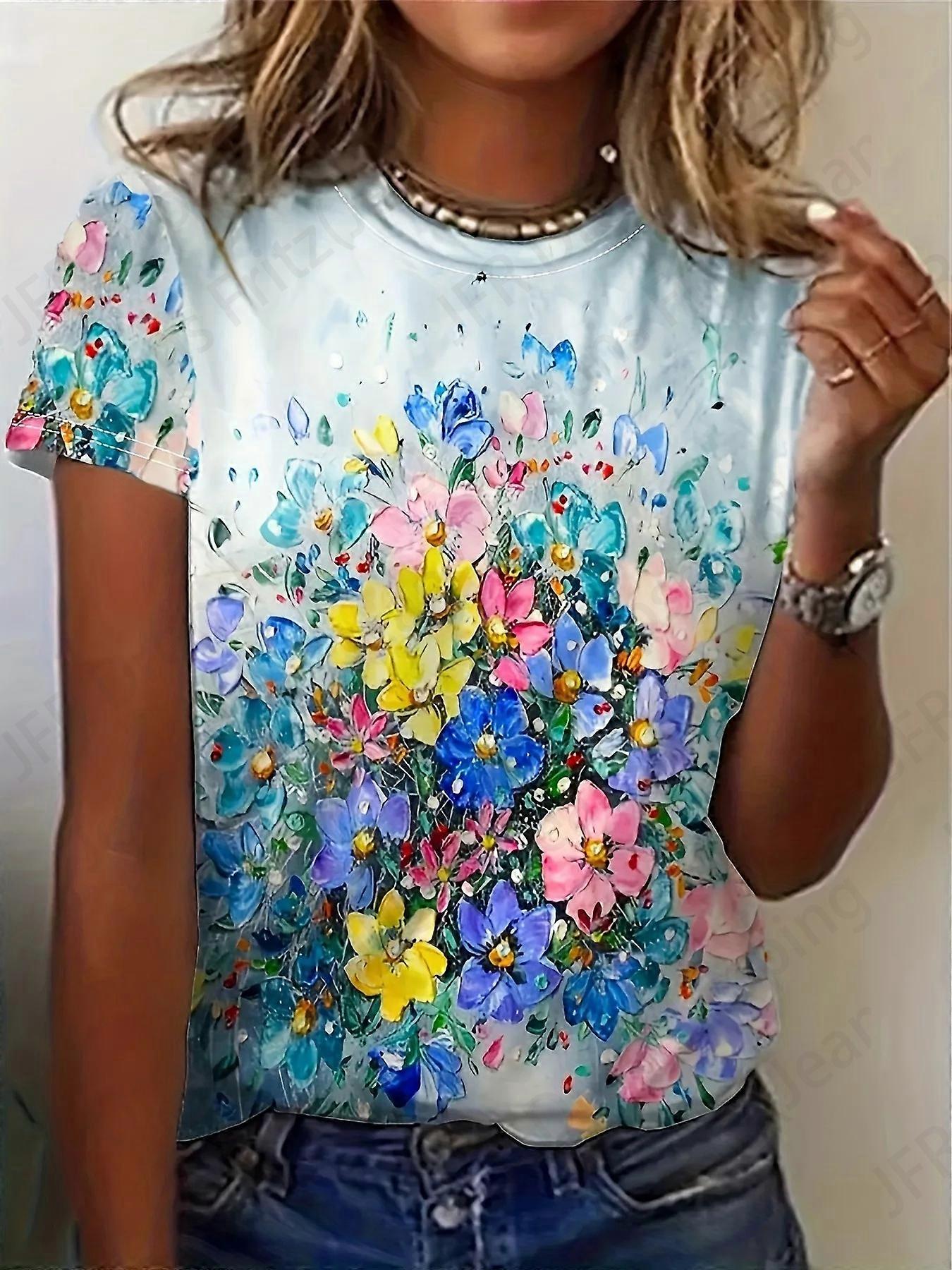 Floral Painting 3d Print Tshirt Women Fashion T-shirts Oversized Tops Tees Female Clothing Flower T Shirt Streetwear Daily Loose