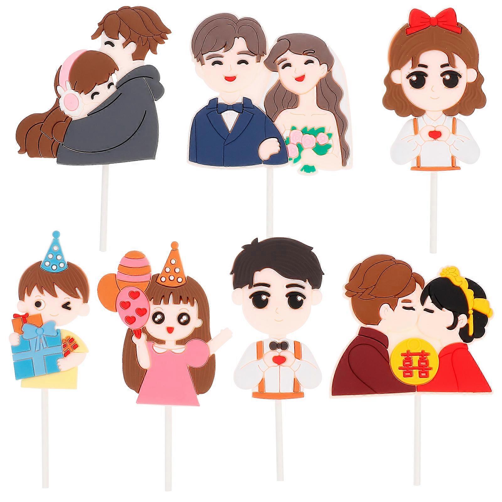 Couples Valentine's Day Cake Decoration 7Pcs Romantic Heart Shape Toppers 11X7CM Assorted Color