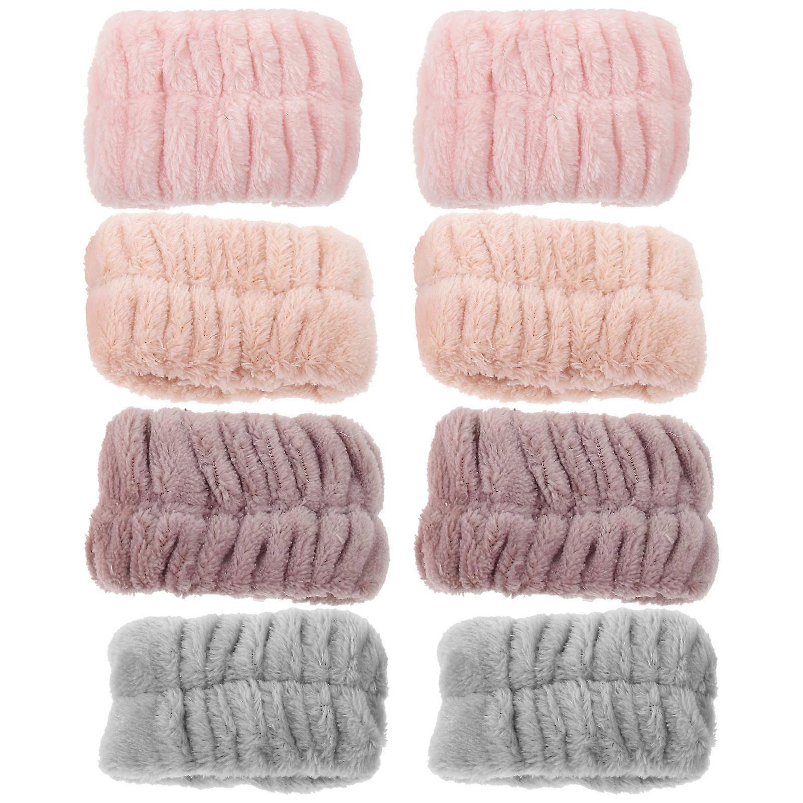 Facial Cleansing Wristbands 4 Pairs Adorable Girls Elastic Plush Wrist Strap Assorted Color Waterproof 4Pcs