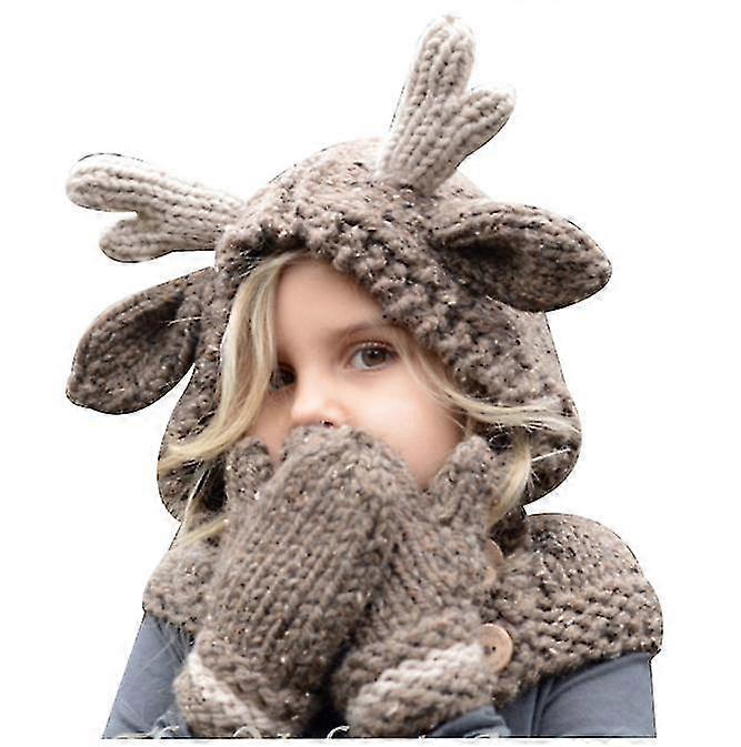 Kids Winter Elk Hat Scarf And Gloves Set Knitted Warm Beanie Cap