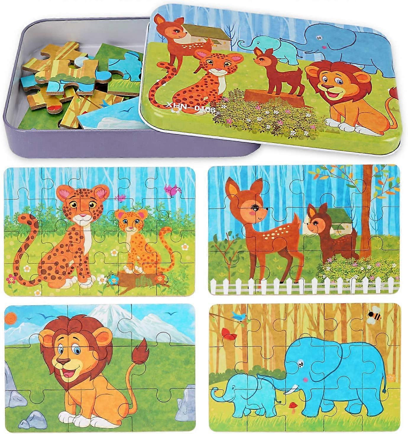 Wooden Jigsaw Puzzles Including Lion Elephant Deer for Children Preschool Learning Educational Puzzles Toys for Boys and Girls
