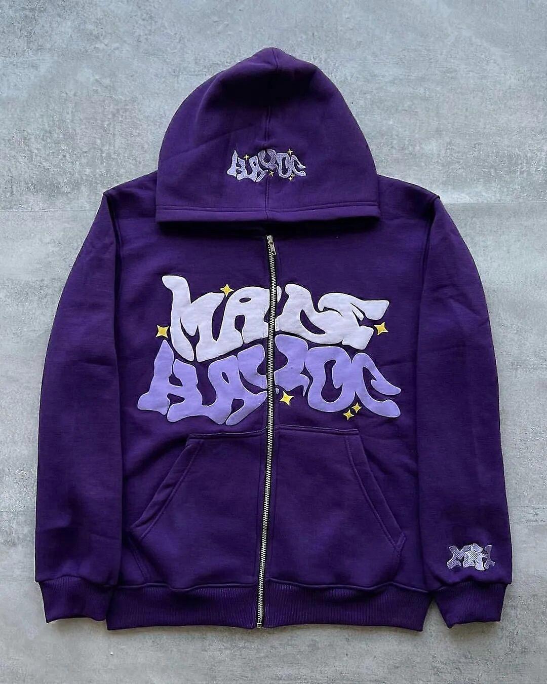 American Retro Star and Letter Printed Zipper Hoodies Women and Men Y2K Spring Autumn Section Lazy Fashion Brand Cardigan Jacket