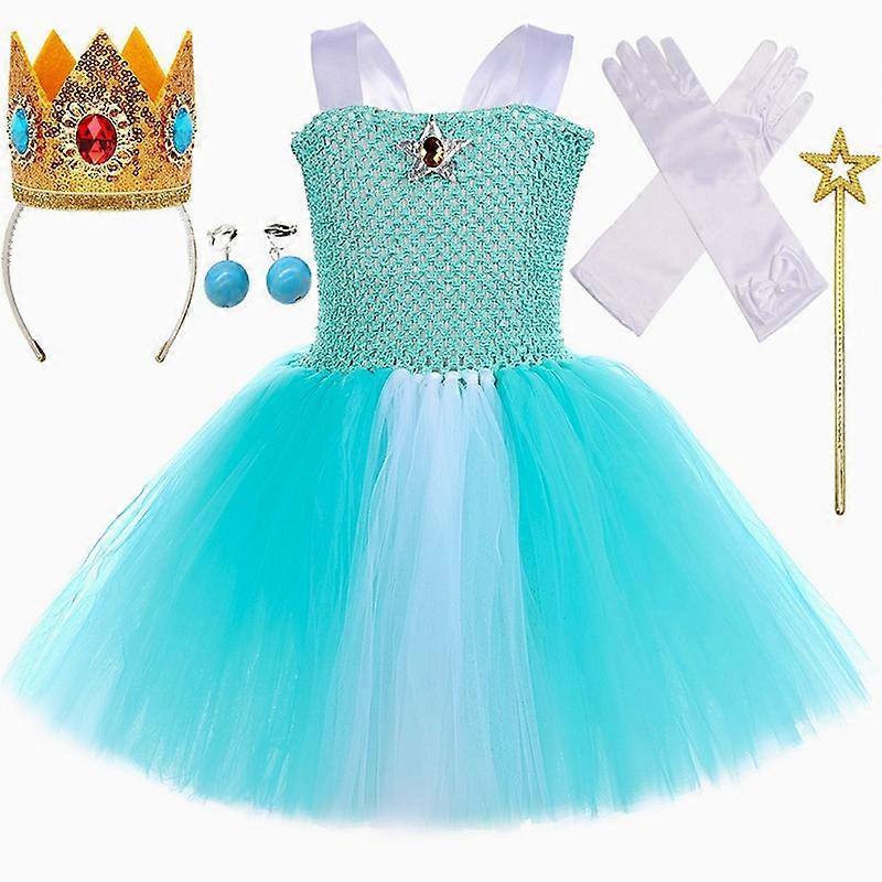 Princess Rosalina Costume Girls Kids Mint Green Tulle Tutu Dress Ball Gown Children Birthday Halloween Carnival Party Clothes