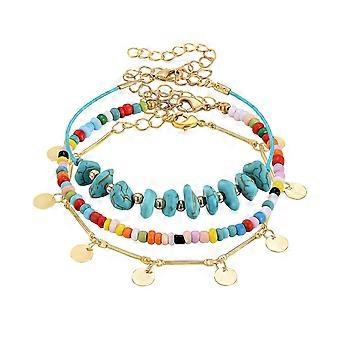 European And American Fashion Bohemian Style Color Rice Bead Anklet 3pcs Set