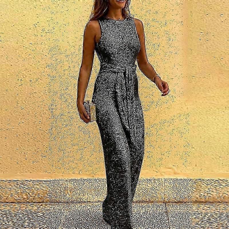 European And American Round Neck Sleeveless Personality Sequin Silver Dot Jumpsuit Women's Clothing