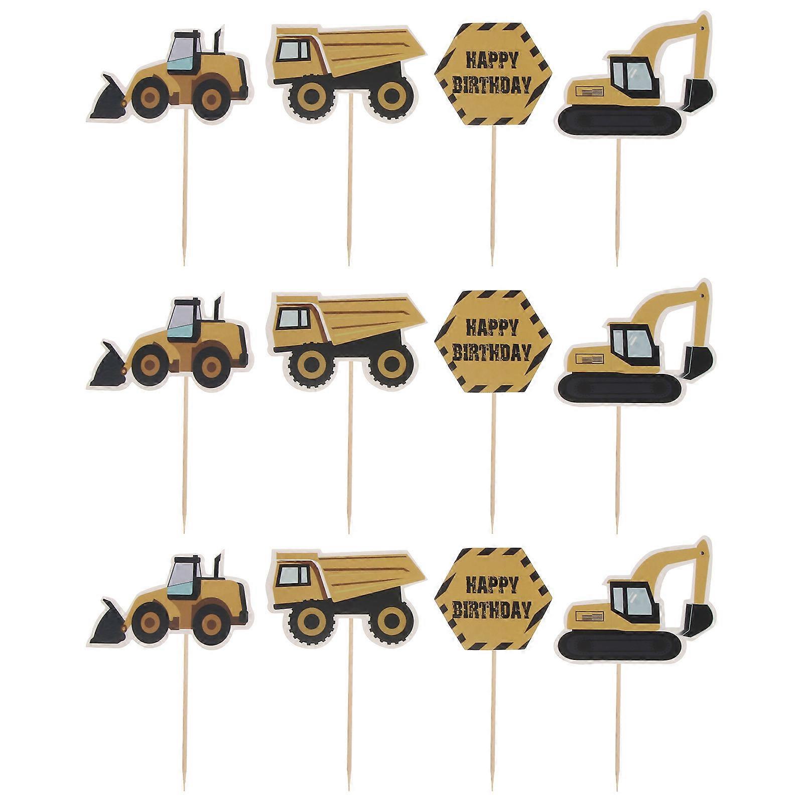 Creative Construction Truck Excavator Cake Toppers Paper Dessert Picks for Kids Birthday Party 36 Pcs Assorted Color