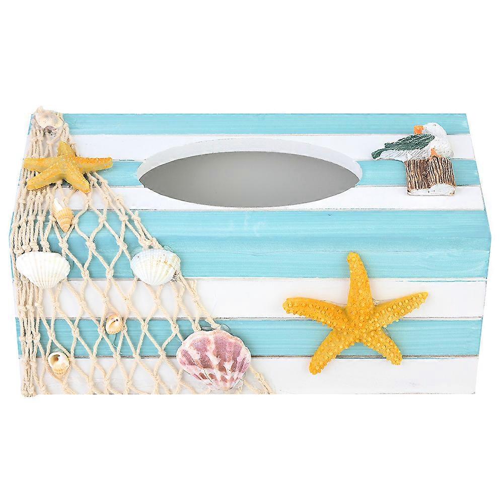 Mediterranean Wooden Tissue Box Restaurant Cafe Napkin Tray Home Decoration(starfish)