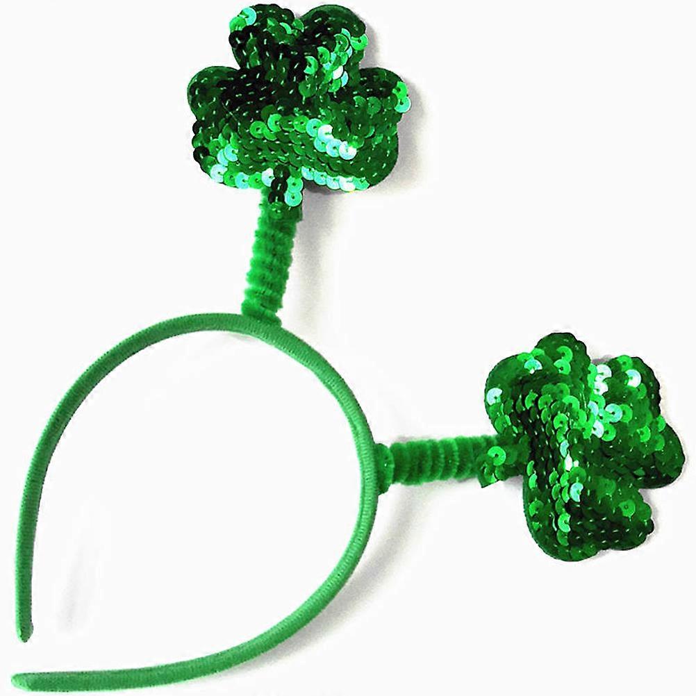 Clover Hair Hoops Bright Green Felt Cloth Sequins Headband for St. Patrick Day Party Decor 4pcs