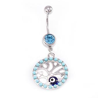 Belly button rings tree of life dangle design with aqua cz jewels / navel