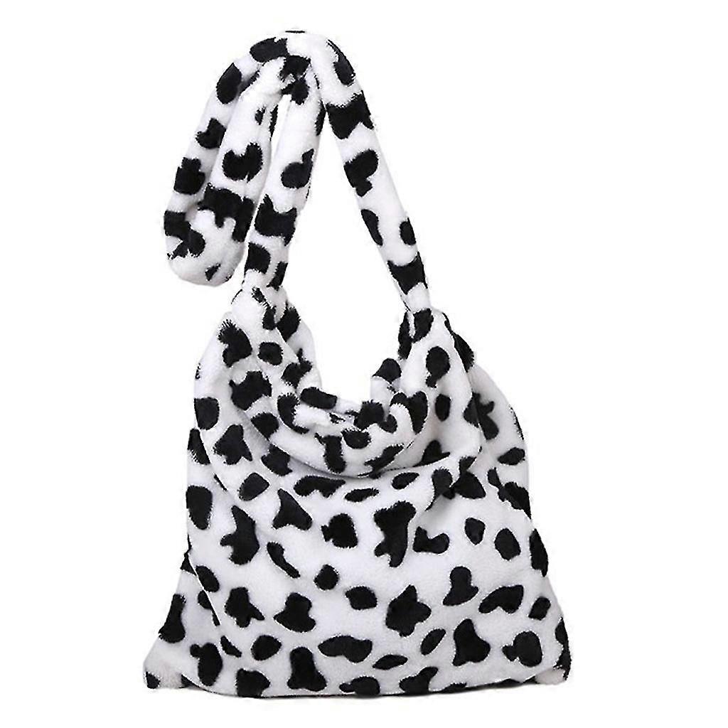 Cow Print Shoulder Bags Plush Satchel Casual Crossbody Bags Retro Tote Handbag