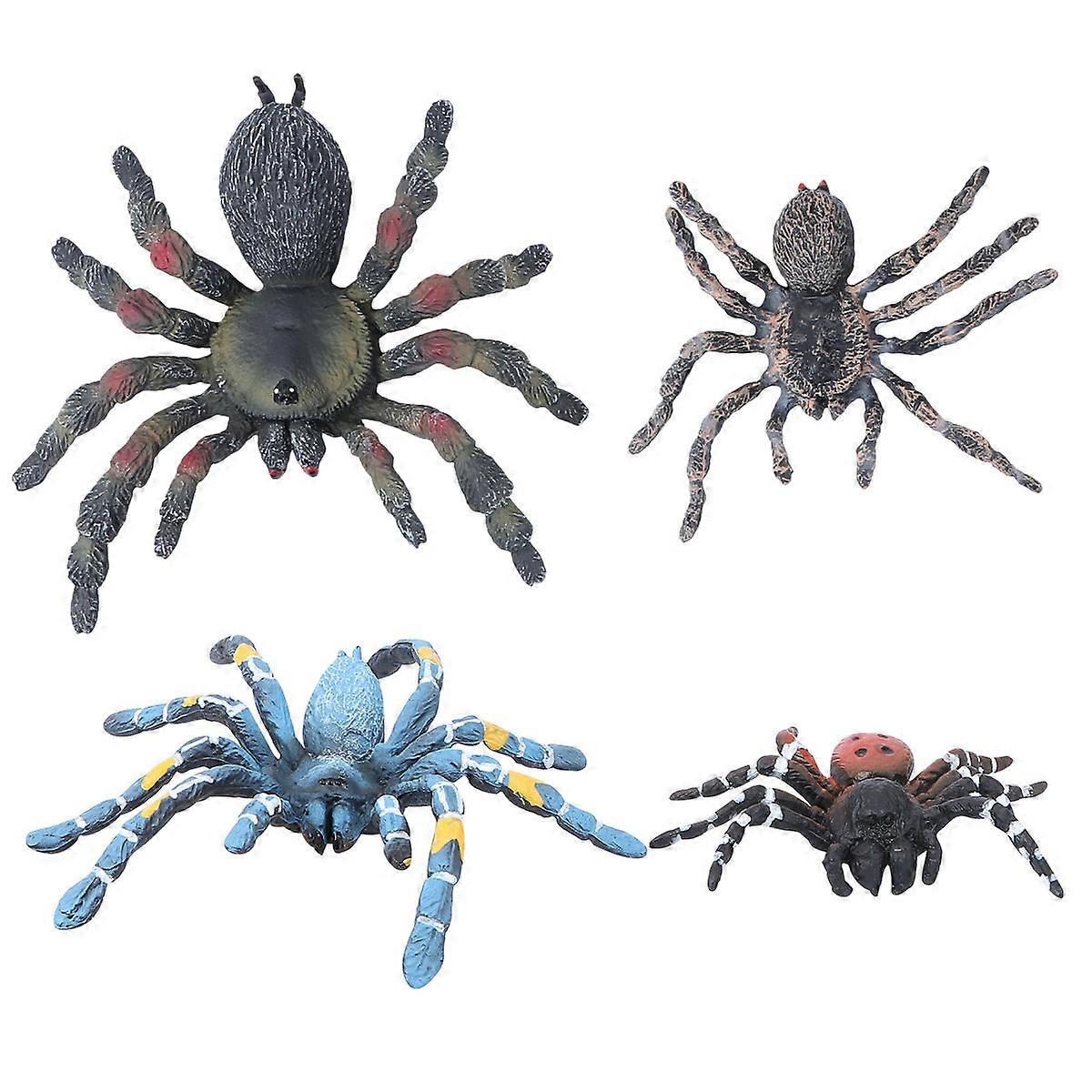 Plastic Spider Model Toy Spider Shape Halloween Decorations Assorted Color Horror Decoration 4Pcs