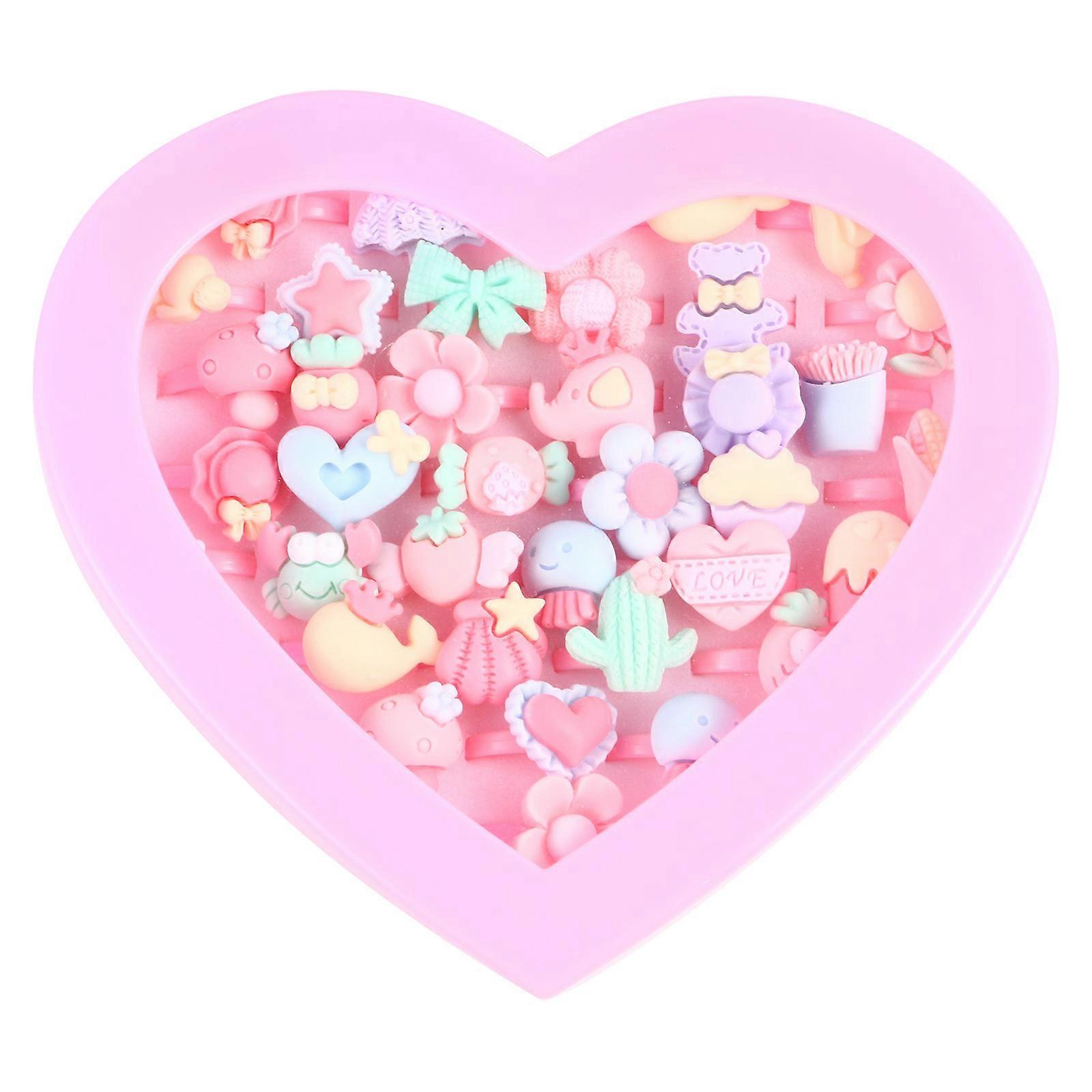 Plastic Play Rings Cartoon Shape Ring Set Goodie Bag Item Valentine's Day Pink 36Pcs