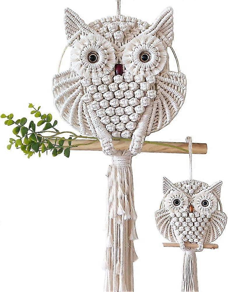 Owl Macrame Wall Hanging Tapestry Art Decor Handmade Woven Boho Ornament Wall Ornament For Office Bedroom Home