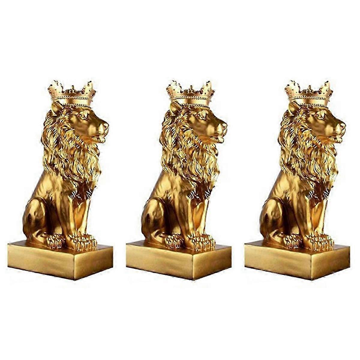 Abstract Crown Lion Statue Home Office Resin Sculpture Crafts-gold