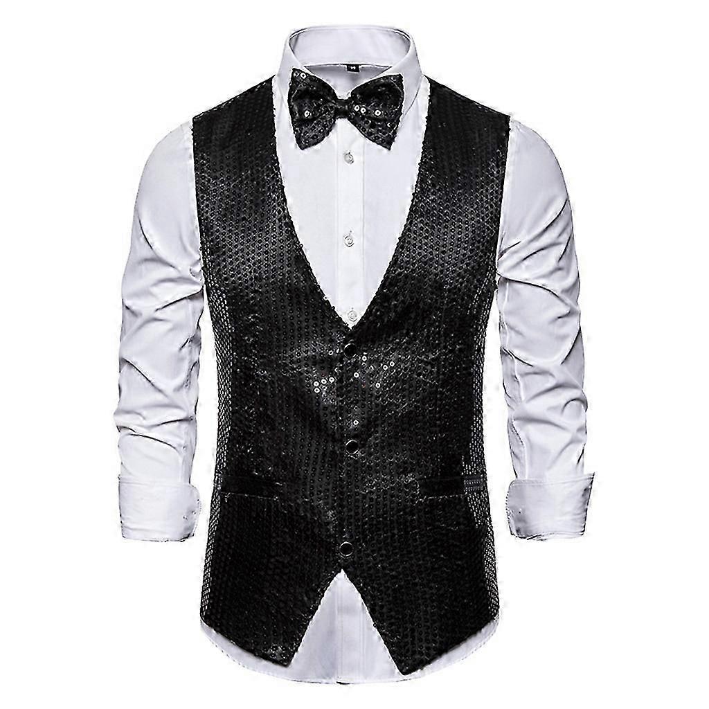Sequins Vest Paillette Bow Tie Jacket Causal Waistcoat Tops Halloween Party