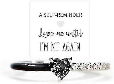 Fast shopping Love Me Until I'M Me Again Black Heart-Cut Half Enamel Ring S925 Sterling Silver Heart Rings Self-Love Ring Gift Jewelry