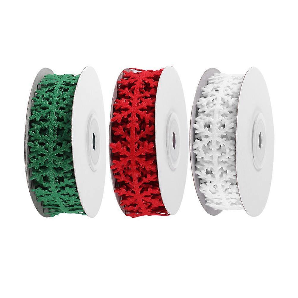 Wrapping Ribbon Snowflake Pattern Christmas Tree Decoration Polyester Assorted Color for Decorative 3 Rolls
