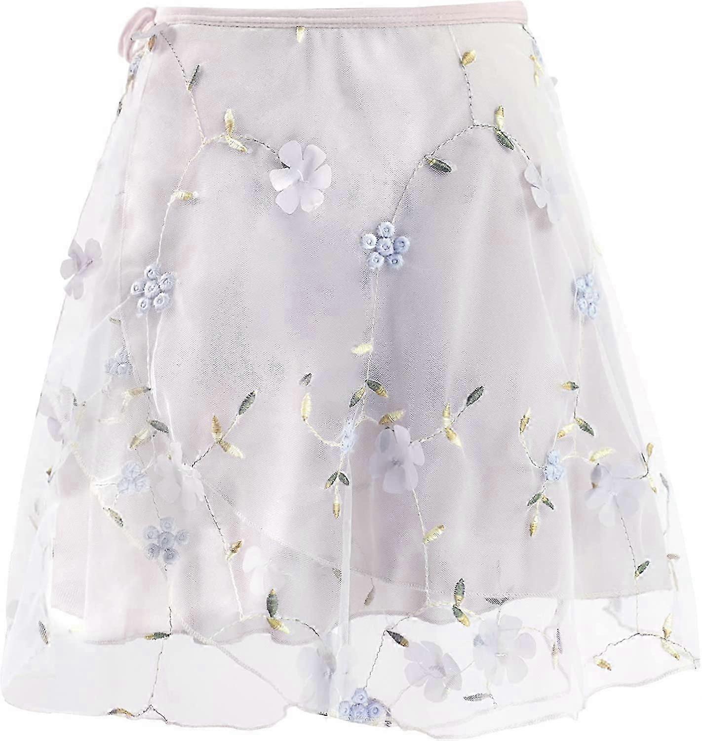 White Ballet Wrap Skirts for Women Lyrical Embroider Dance Skirts 2 Layers S-2XL