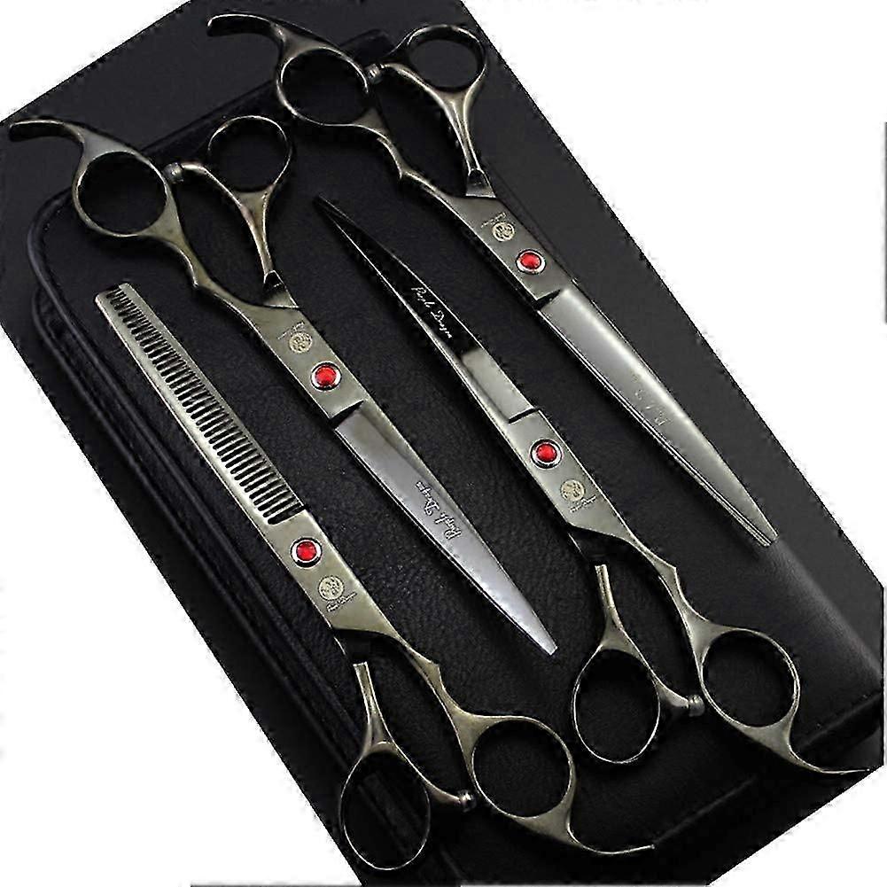 Purple Dragon Professional 7.0 inch 4PCS Pet Grooming Scissors Kit Japan Premium Steel Straight & Curved & Thinning Blade Dog Hair Cutting Shears Set