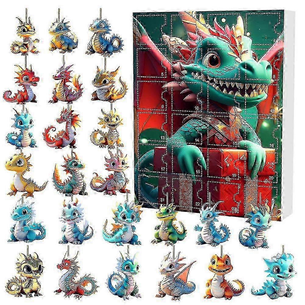 Dragon Christmas Advent Calendar 24 Days Of Vacation Advent Calendar 2D Acrylic Dinosaur Pendant For car christmas tree decor