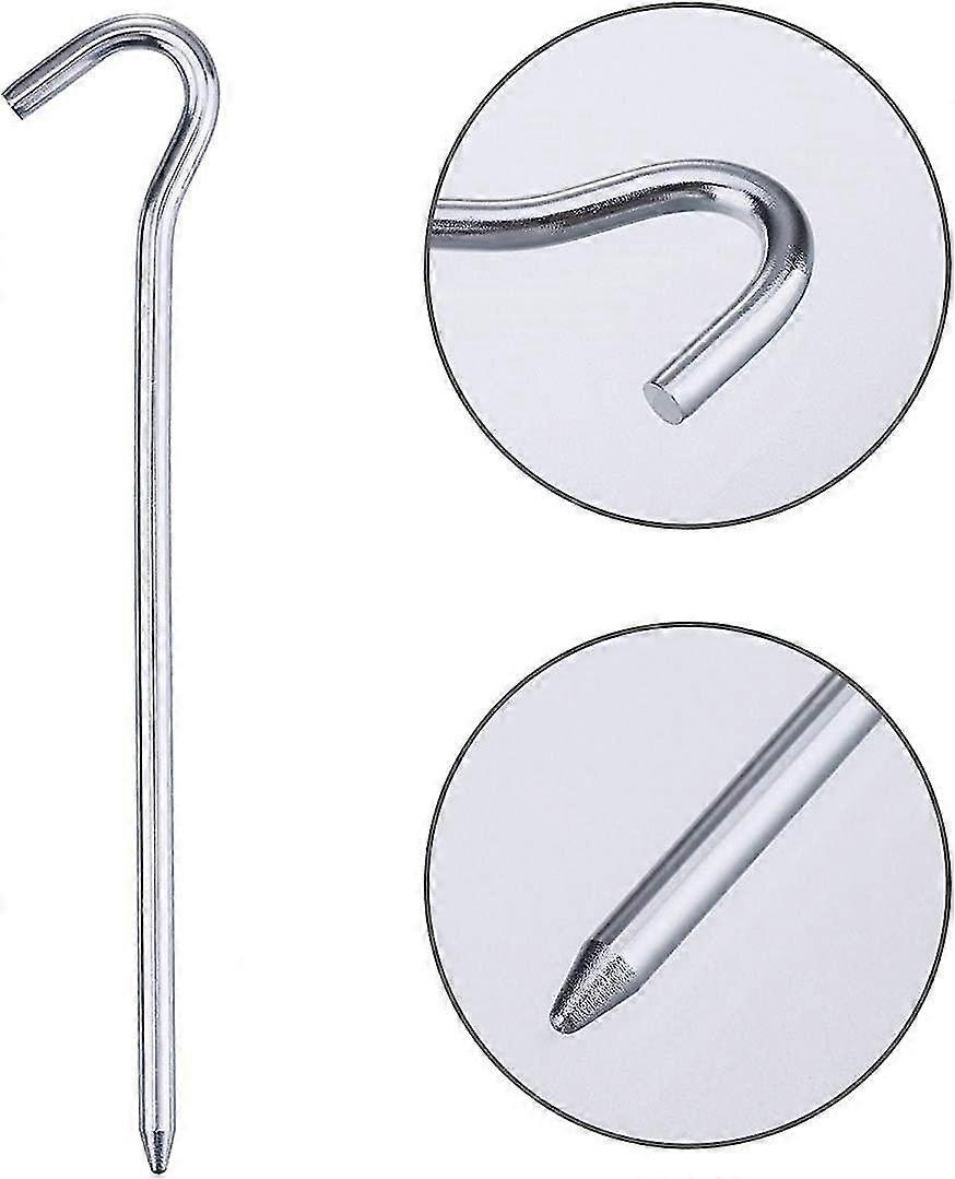 Heavy Duty Tent Pegs Universal 9 Inch Steel Camping Guy Pins With Secure Curved Hook Ends - Essential For Campers Backpackers For Securing Tents Grou