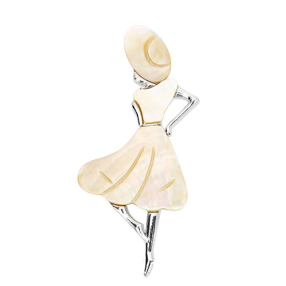 Beauty Girl Shaped Brooch Delicate Shell Hat Corsage Creative Clothes Pin for Women Girls Wearing Beige 1Set