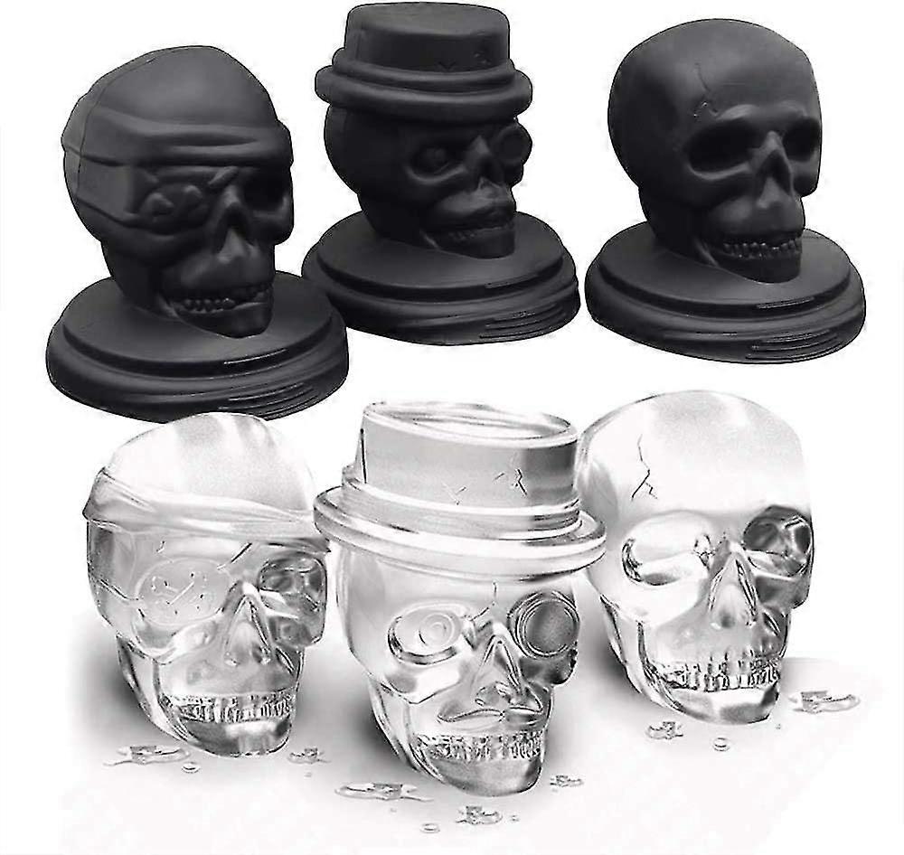 Skull Ice Mold, Pop 3d Flexible Large Round Cube Ball Silicone Tray Maker For Holiday Party, Halloween, 3 Pack, Black