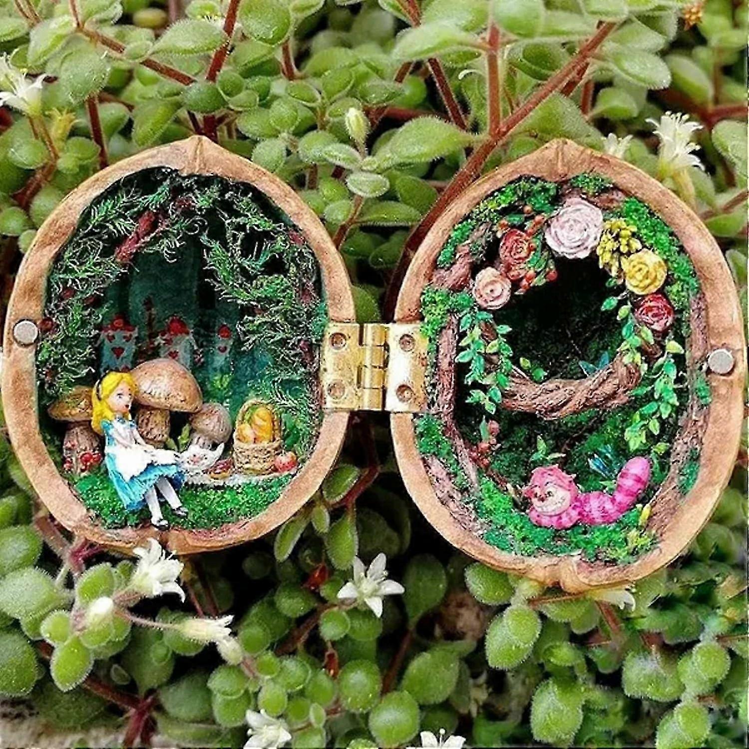 Walnut Shell Doll House-mini Library, Tiny World Inside Walnuts,handmade Walnut Shell Doll House Mini Library,resin Miniature Dollhouse