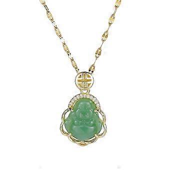 Safe Guard Lucky Maitreya Buddha Pendant Necklace Stainless Steel Vintage Jewelry for Women Green 6033