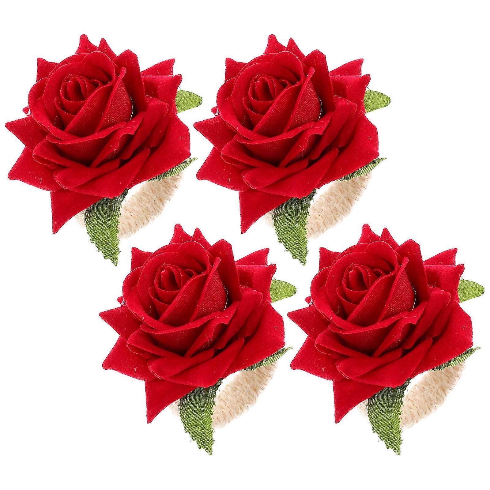 Silk Cloth Rose Napkin Holders Handicraft Item Casual Gatherings Dinner Decor 2.8×2.4×2.4in 4Pcs