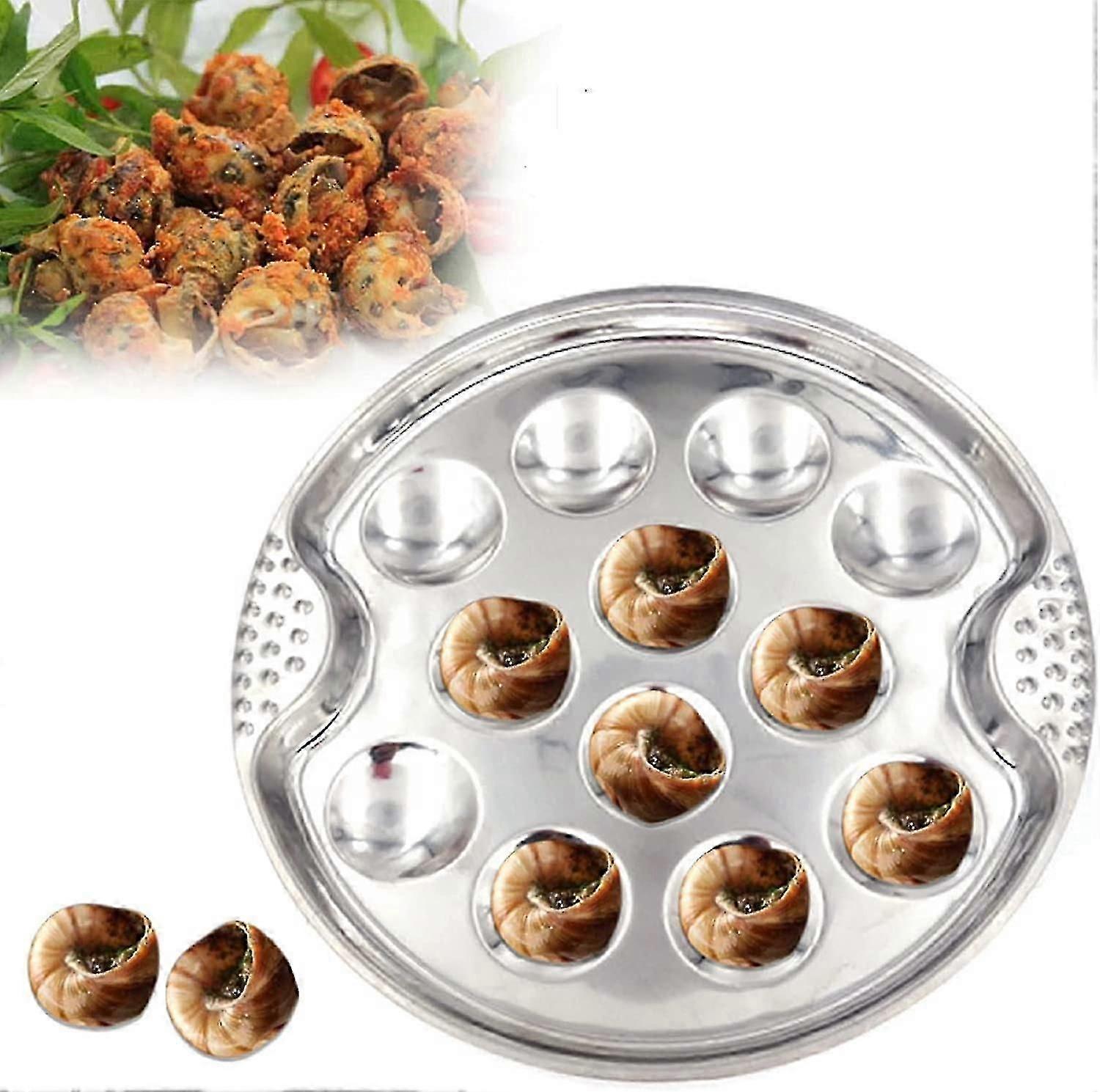 Snail Escargot Plate Stainless Steel Thickend Snail Dishes 12 Compartment Holes Tong Set Food Plate