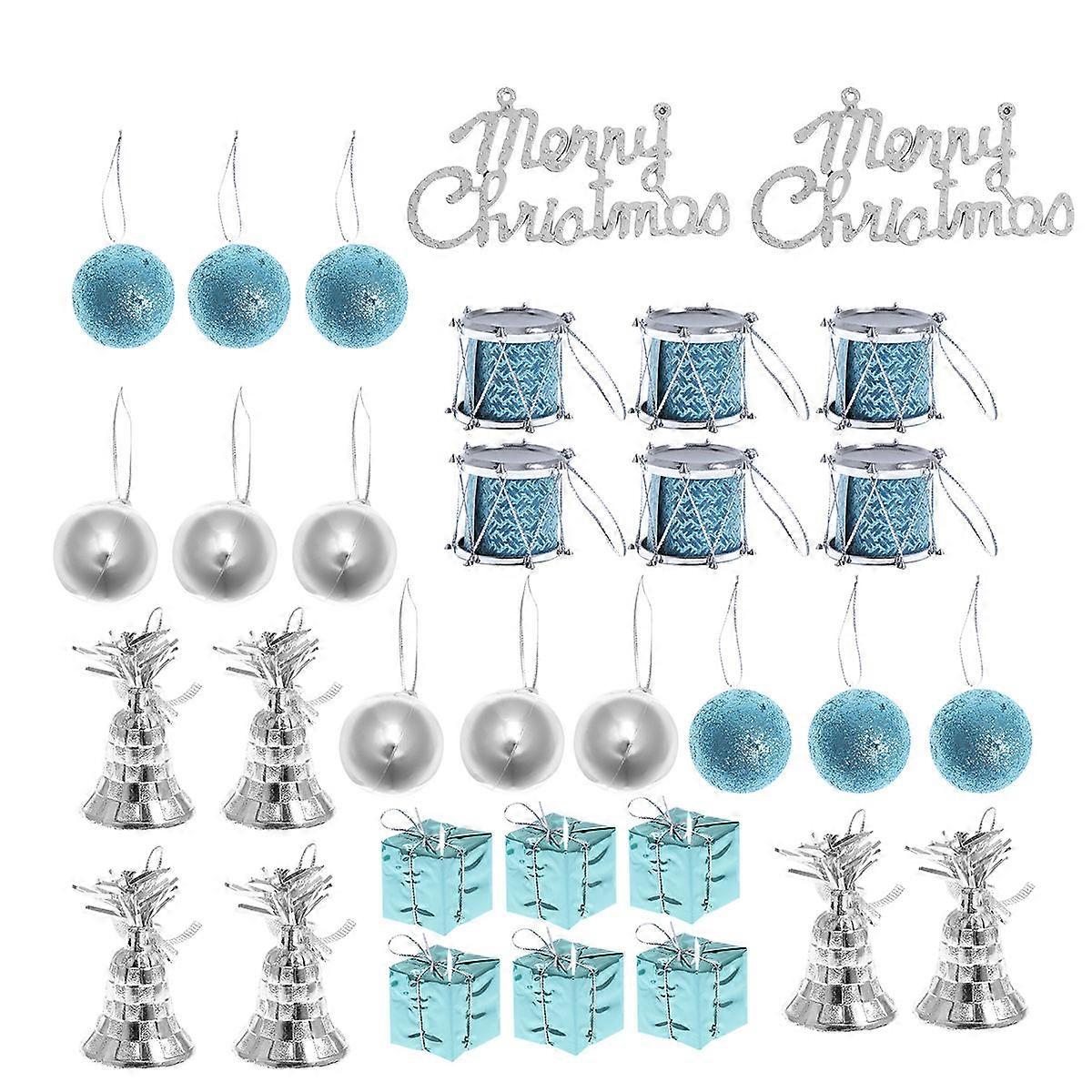 Bright Ornaments Small Tree Decorations Traditional Tree Decorations Sky-Blue Pendant Design Christmas Festival 32Pcs