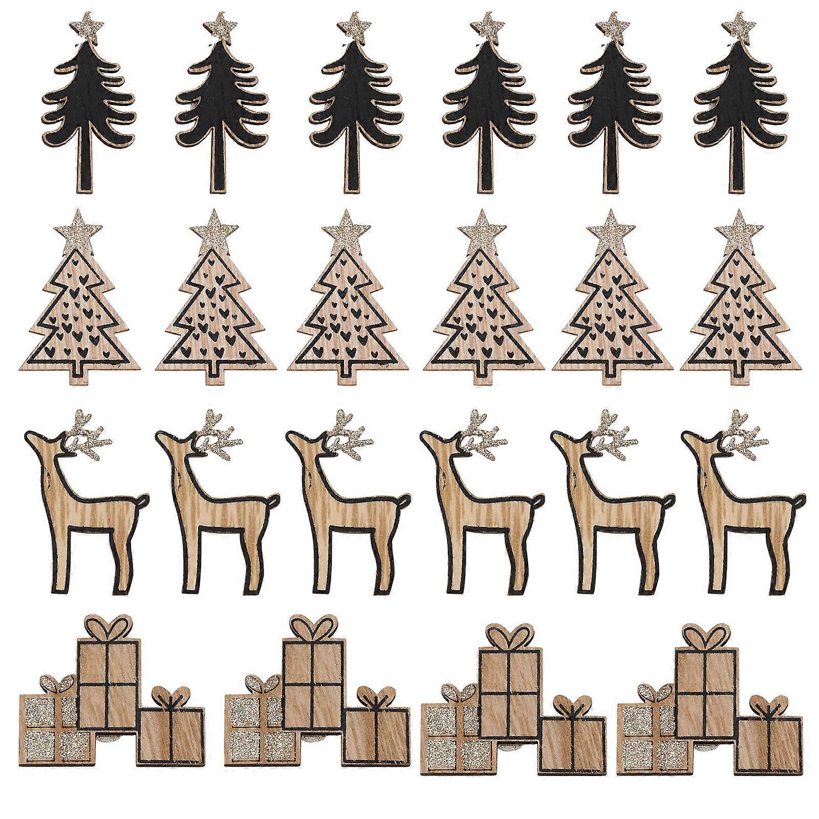 Made of wooden material which is and sturdy. They can be used to decorate on the Christmas tree, wall, door, window, etc. These wooden ornaments designed with Christmas themed shapes will bring more festive and fun atmosphere for you. Features - Material: Wooden. - Made of material which is environmental friendly, and sturdy. - With stickers on the back, they can be pasted on the Christmas tree, wall, door, window, etc. - These Christmas decorations will bring more festive and fun Christmas atmosphere for you. - Classic Christmas decor, trendy and beautiful decoration, creating a cozy and festive atmosphere for the shopping mall or store. - Good gifts to give our friends, relatives, colleague, families and so on during Christmas. Package list: 2 Boxes/24pcs x Christmas ornaments