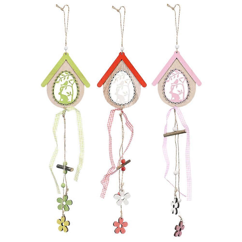 Cute Ornaments Indoor Small Ornaments Wooden Rabbit Red Hanging Decoration 3Pcs