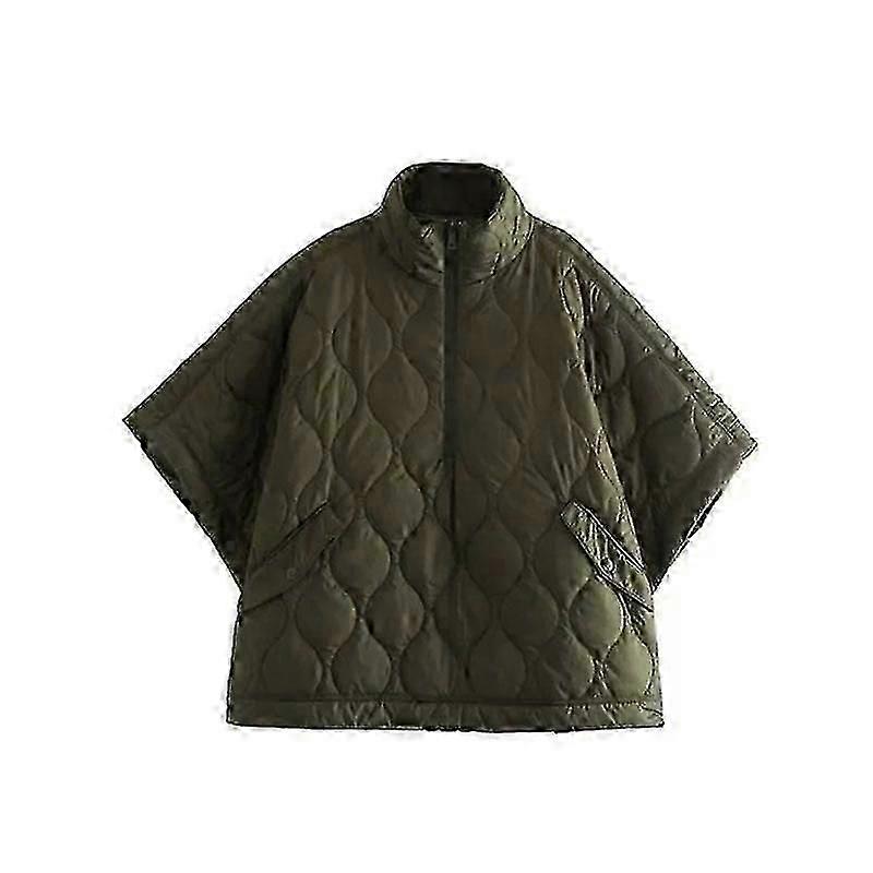 Autumn and Winter New Women Standing Neck Loose Medium Sleeve Diamond Quilted Waterproof Cloak Coatzz