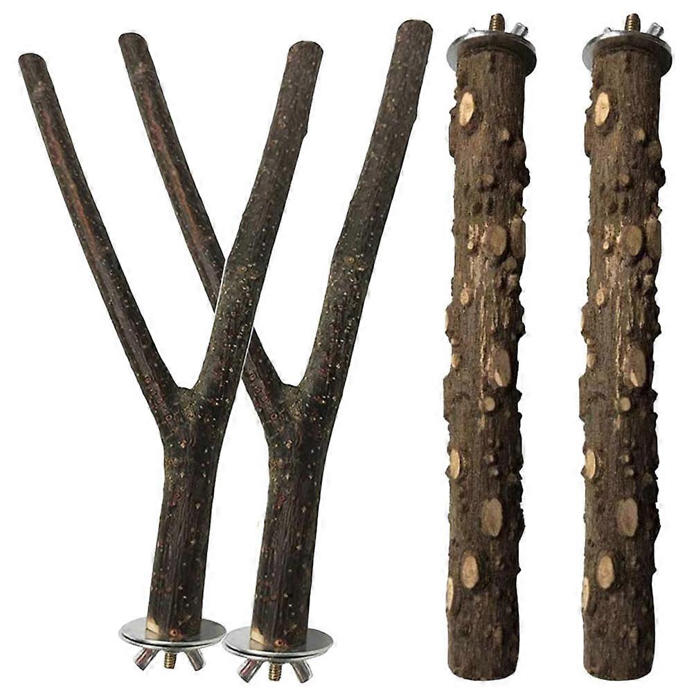 Wood Bird Cage Mount Rod for Parrot Perch Toy Coffee Color Sturdy and Durable 4 Pieces