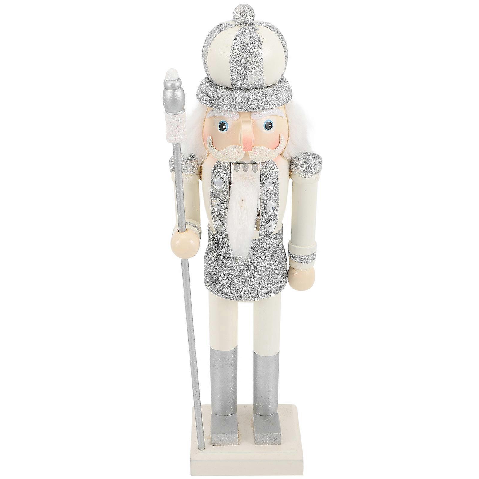 Wood Nutcracker Soldier for Wedding Desktop Decor 2Pcs Silver Table Ornament