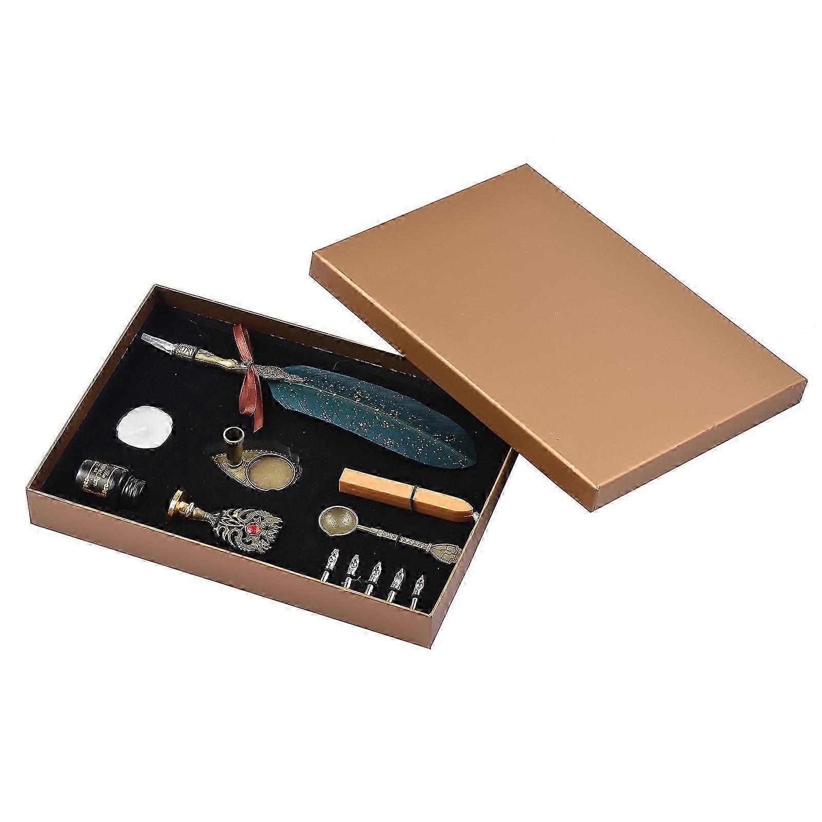 Calligraphy Pen Ink Set and Wax Seal Kit Quill Pen and Ink Set Feather Pen Antique Calligraphy Dip Pen with 10 Replacement Nibs Vintage Gift Box
