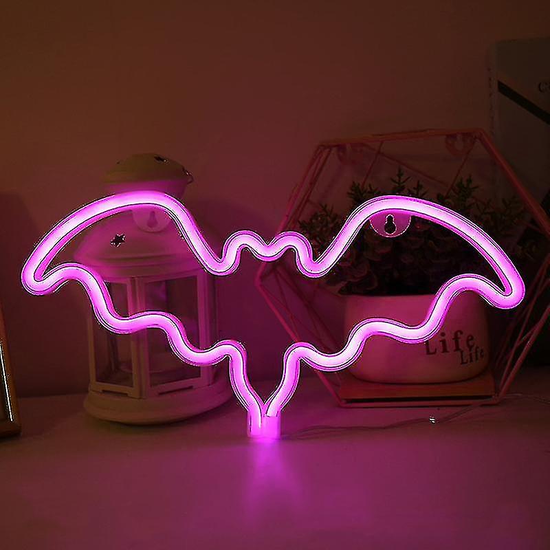 Bat Neon Lighting Bat Logo Wall Decor, Usb Powered Pink Bat Neon Interior Wall Lamp Bedroom, Halloween, Christmas Lighting