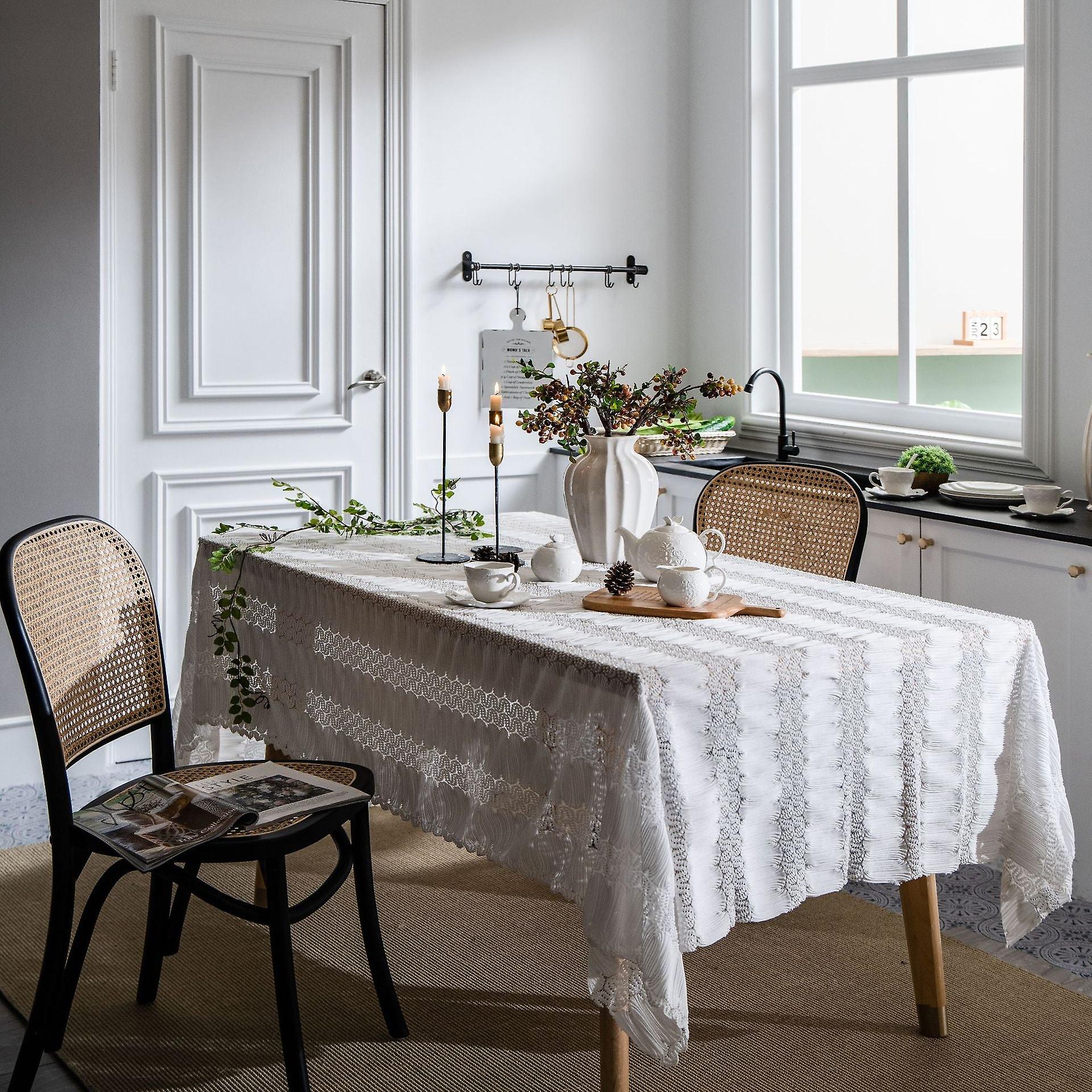 Lace Jacquard White Tablecloth Hollow Rectangular Dining Table Fabric