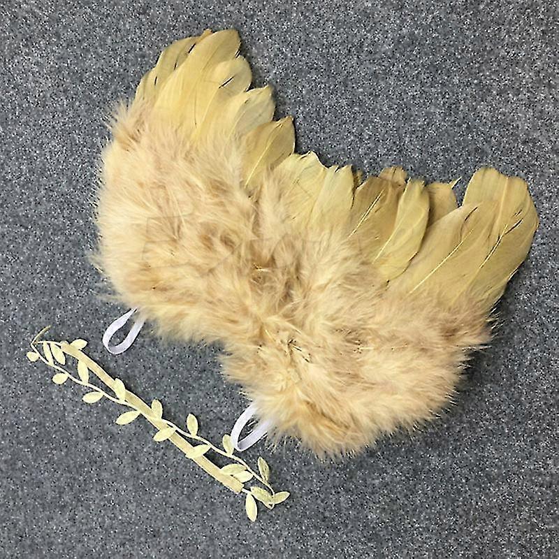 Newborn Baby Photography Props Golden Angel Feather Wing + Headband Outfit Set
