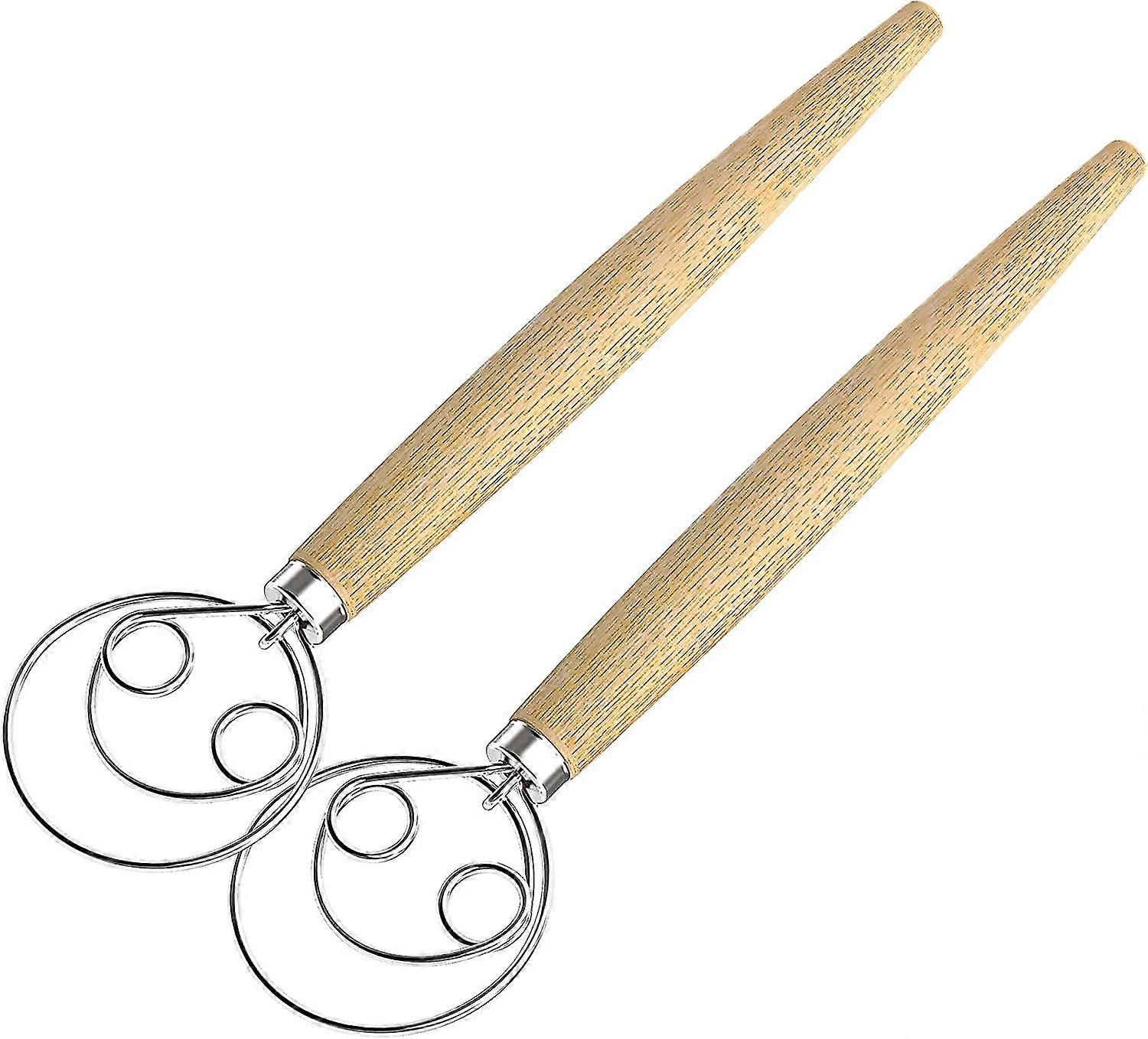 Danish Dough Whisk,2 Pack Danish Whisk Hook 13inch Stainless Steel Dutch Style Bread Whisk Wooden Hand Mixer Making Tools For Cake, Bread, Cookie, Piz